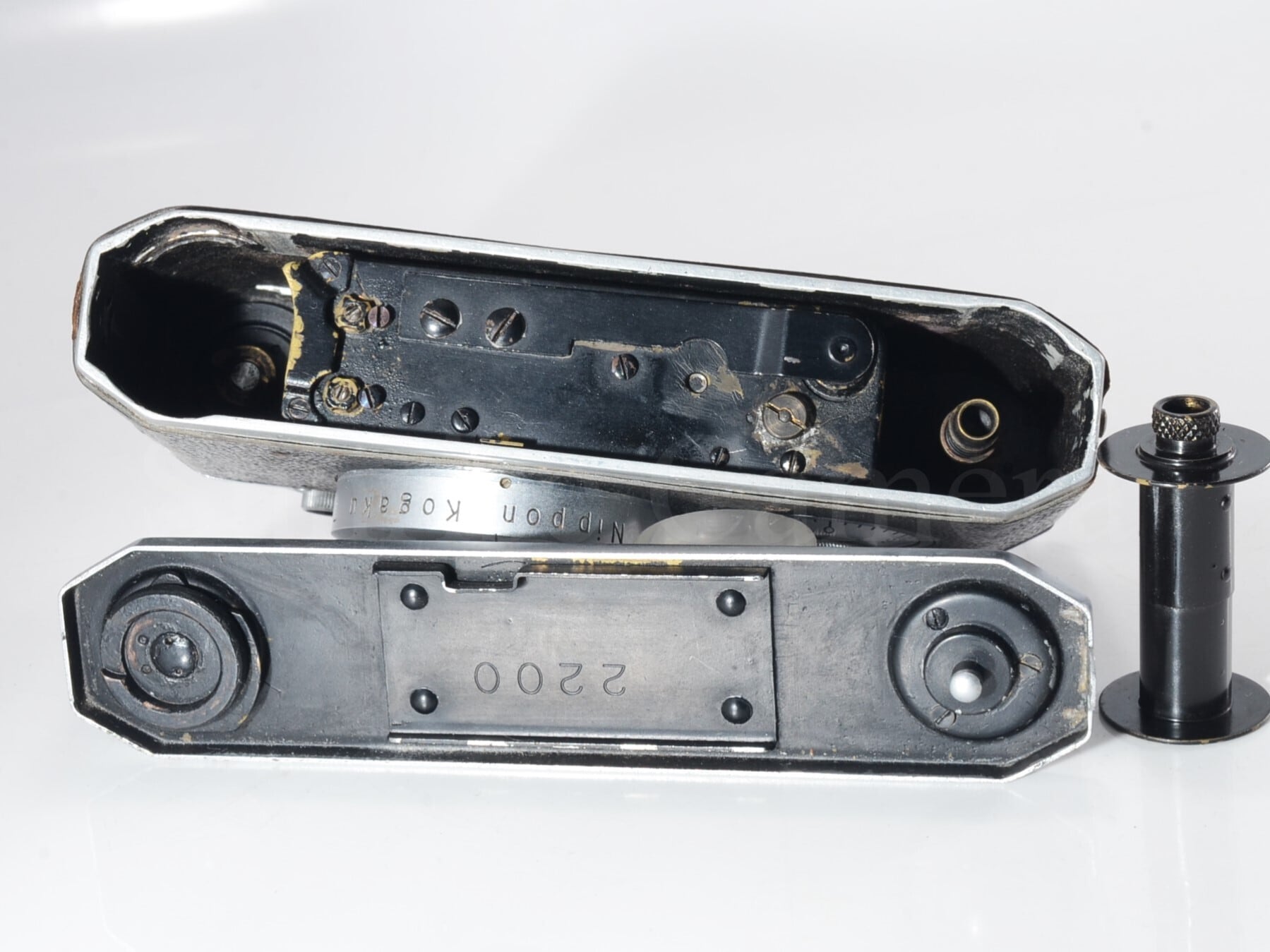 シャッターも切れ、巻き上げやカウンターなどもまだ動作しています。レンズも経年にしてはキレイだと思います。ケースも劣化はあり、恐らく前オーナーのネームの記載などもありますが、破れなども僅かで原型をしっかりとどめています。